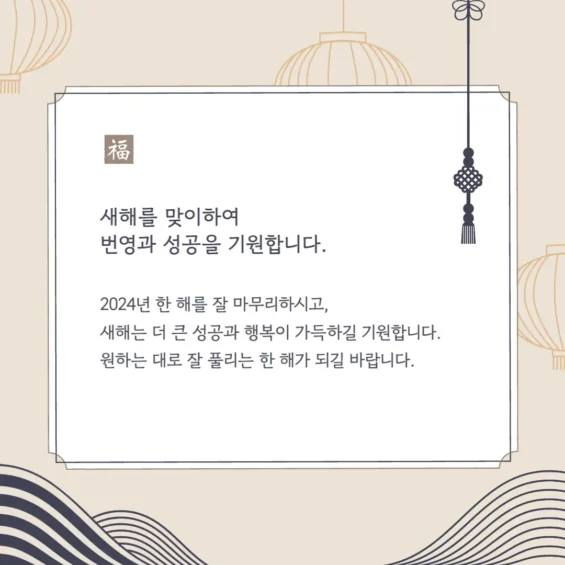덕담 문구에는 복, 건강, 행복, 감사, 성공 등의 단어를 넣었습니다.